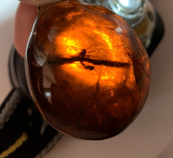 The insects are most visible using transmitted light. Two interacting wasps, a dragonfly, a hornet, a midge and an ant.