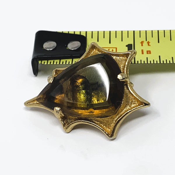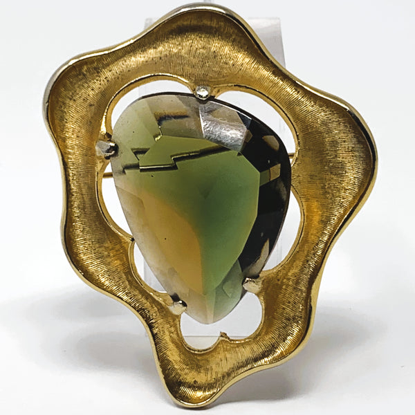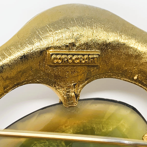 Corocraft BSK Gold Tone Watermelon Glass Statement Brooch and Clip-On Earrings