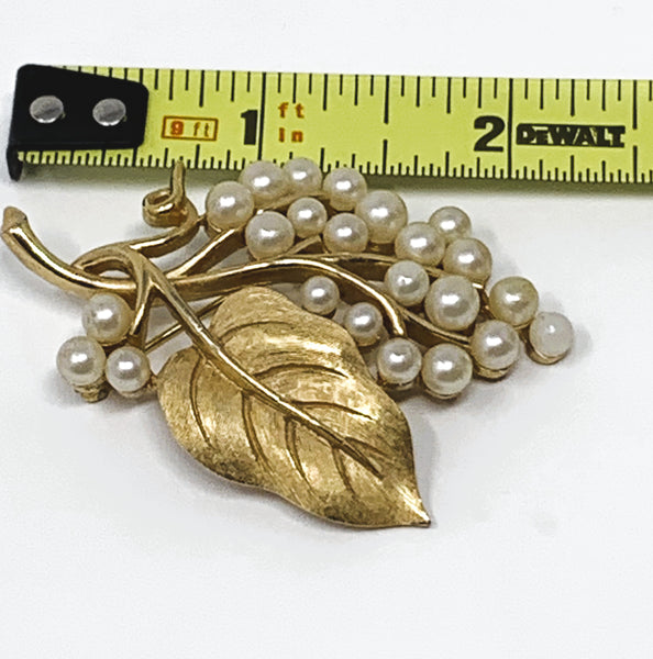 Crown Trifari Imitation Pearl Gold Tone Branch Brooch