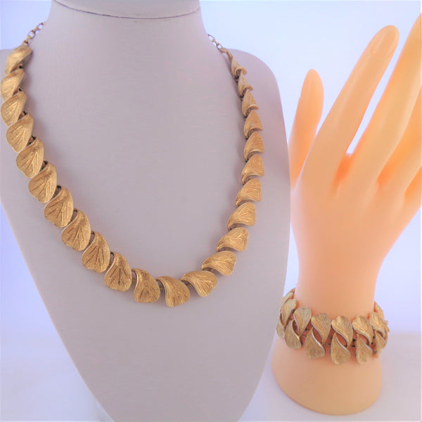 Francois Line by Coro Gold Leaf Choker Necklace and Bracelet