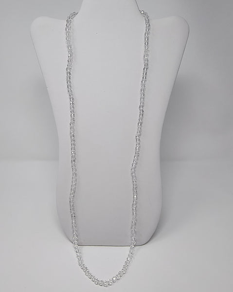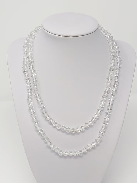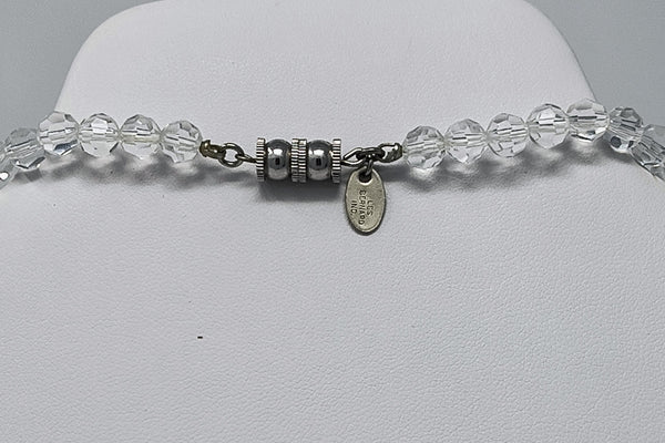 This stunning Les Bernard necklace features clear faceted crystals arranged in beautiful, beaded strands. The vintage piece is signed by the designer. The necklace is 34 inches long and has a barrel closure. The necklace's style is beaded and is made of crystal. It is an original piece from the United States. Les Bernard was in business from 1963 to 1996.