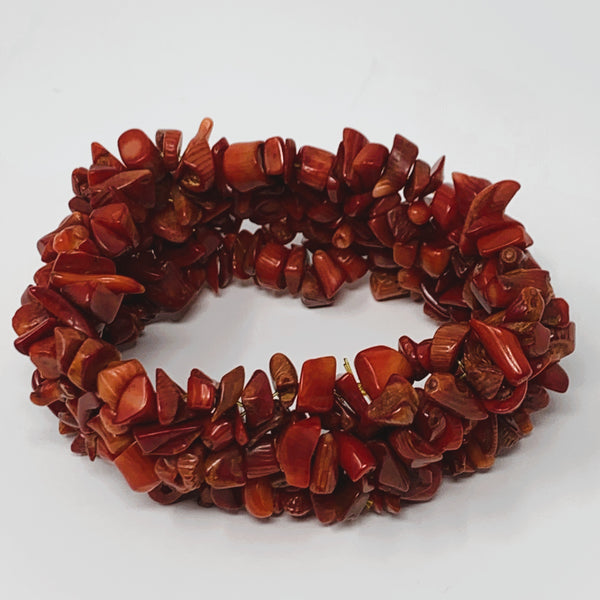 Red Sciacca Coral Chip Beaded Stretch Cuff Bracelet