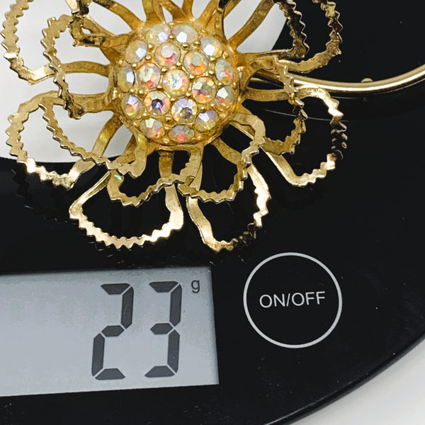 Sarah Coventry Gold Plated Aurora Borealis Flower Brooch