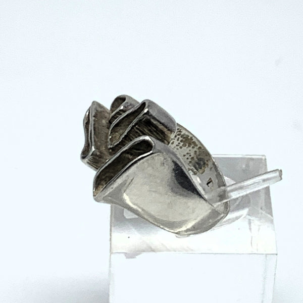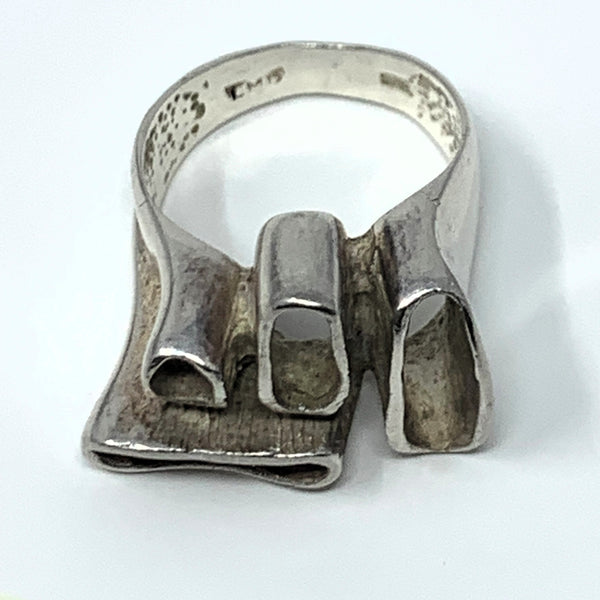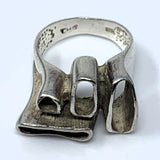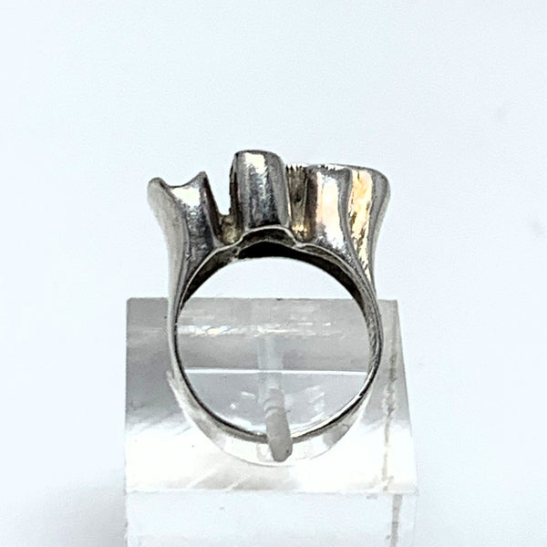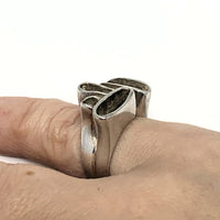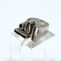 Silver Abstract Artisan Ring, Brutalist, Avante-Garde, wearable work of art