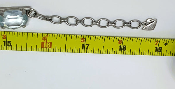 Carefully crafted by the renowned brand Swarovski, this necklace features a stunning array of aqua crystals that catch the light with every movement, creating a dazzling display. Designed to complement both casual and formal ensembles, this versatile accessory adds a pop of color and sophistication to any outfit. The exquisite craftsmanship and iconic Swarovski branding ensure that this necklace is not just a jewelry item, but a treasured addition to your collection.