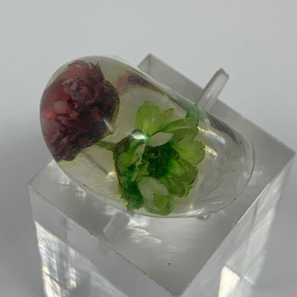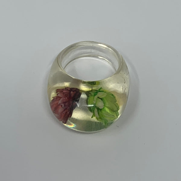 Vintage Lucite Bubble Dome Ring with Dried Flowers