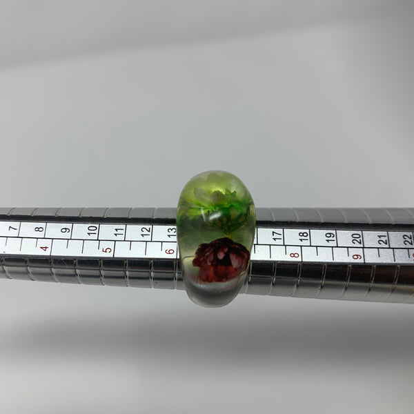 The material is Lucite with dried flowers